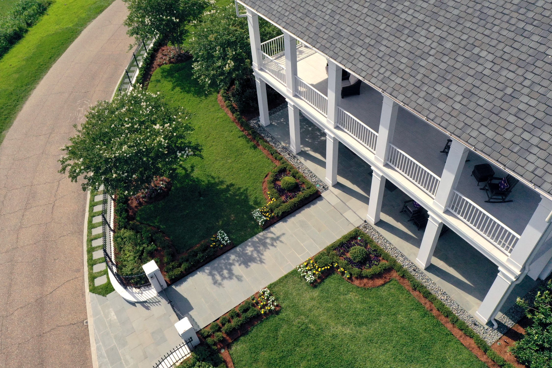 With its crisp white exterior and columned architecture, this beautiful home called for a landscape that felt just as tailored. From the first walkthrough to the final plant in the ground, our team focused on framing the house with clean lines, soft edges, and thoughtful plant layering. The result: a welcoming, high-end look that reflects the homeowner’s vision from every angle.